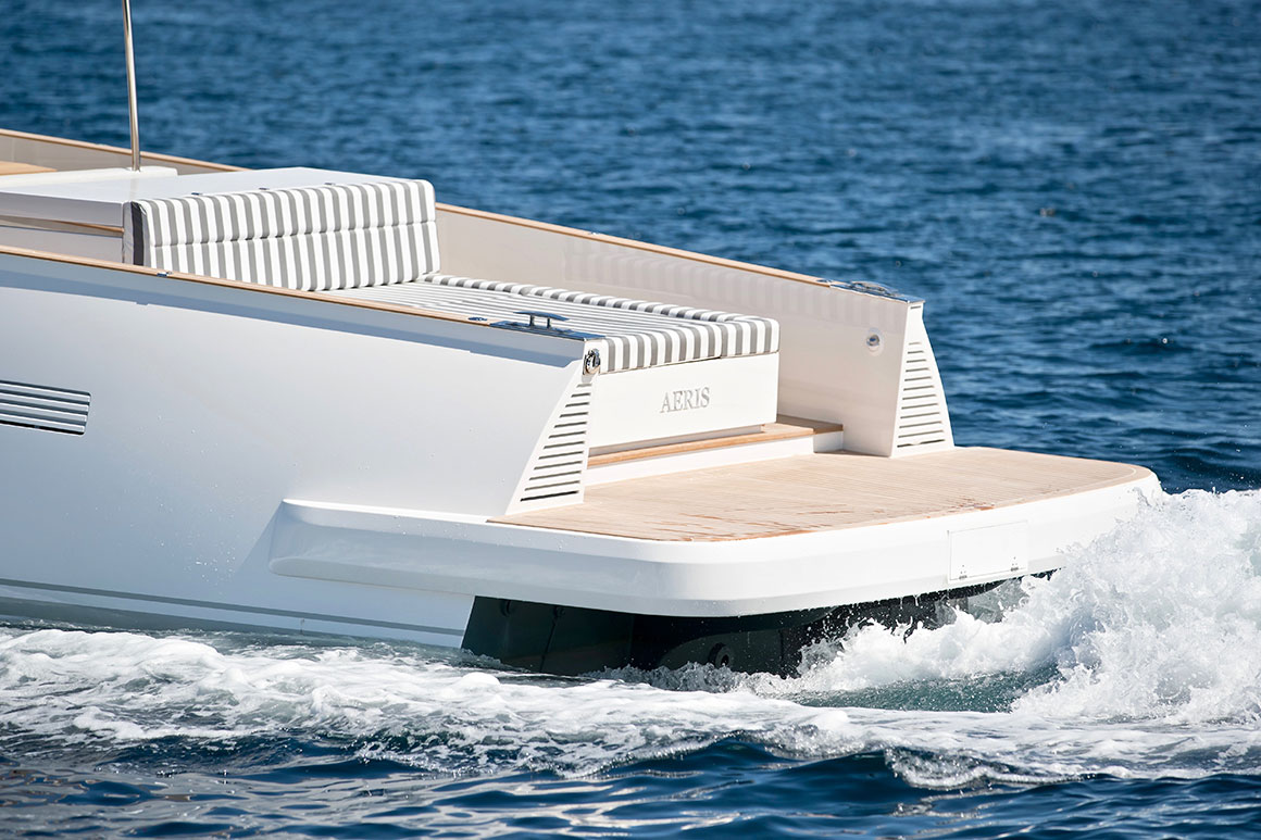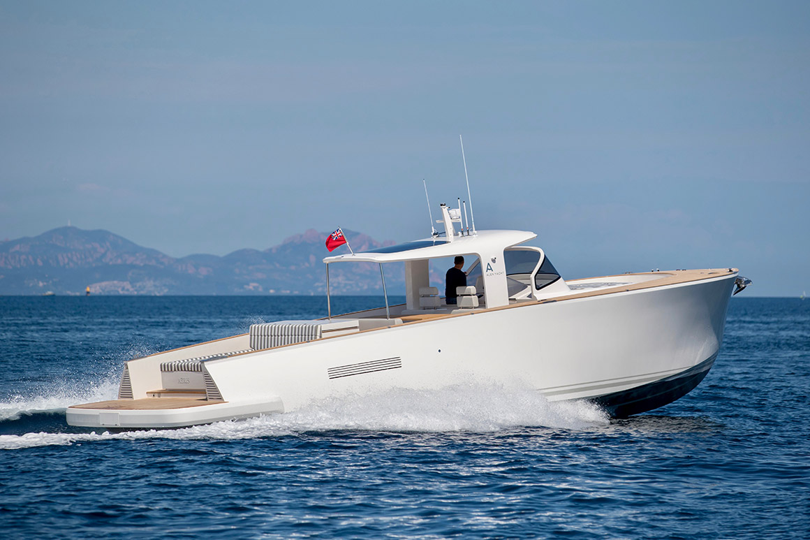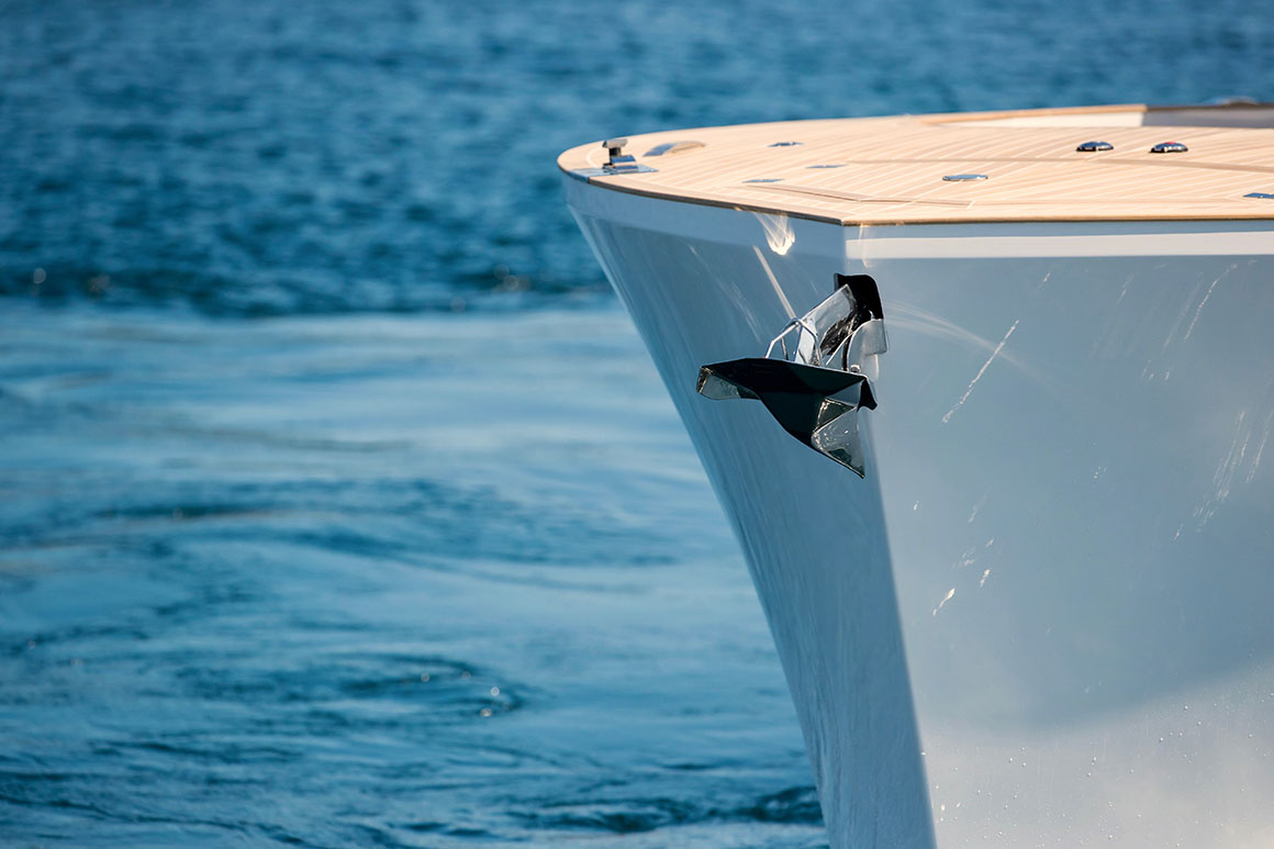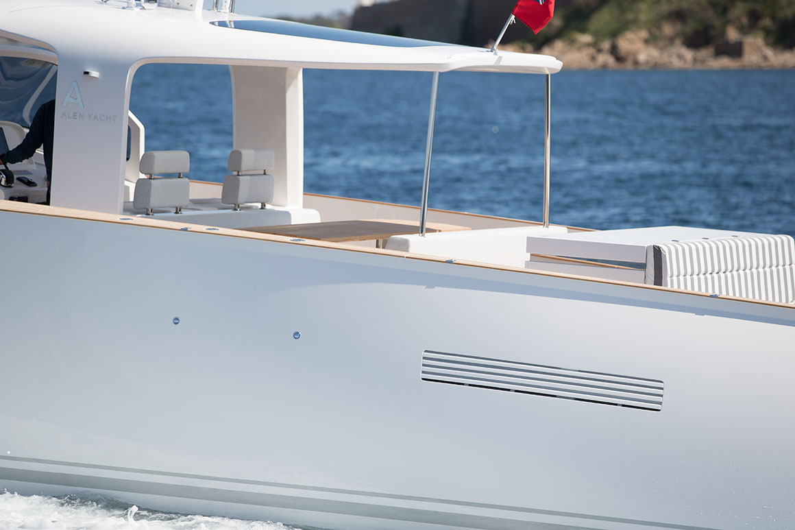 Sleek and refined, the Alen 45 combines elegance with technological innovation. The yacht’s ‘all around’ deck makes full use of the exterior space and allows 12 guests on board in comfort and safety. Her technically engineered V-shaped hull ensures steady cruising in all conditions.