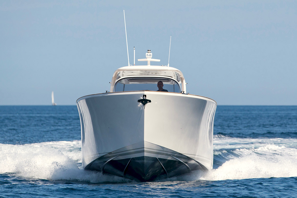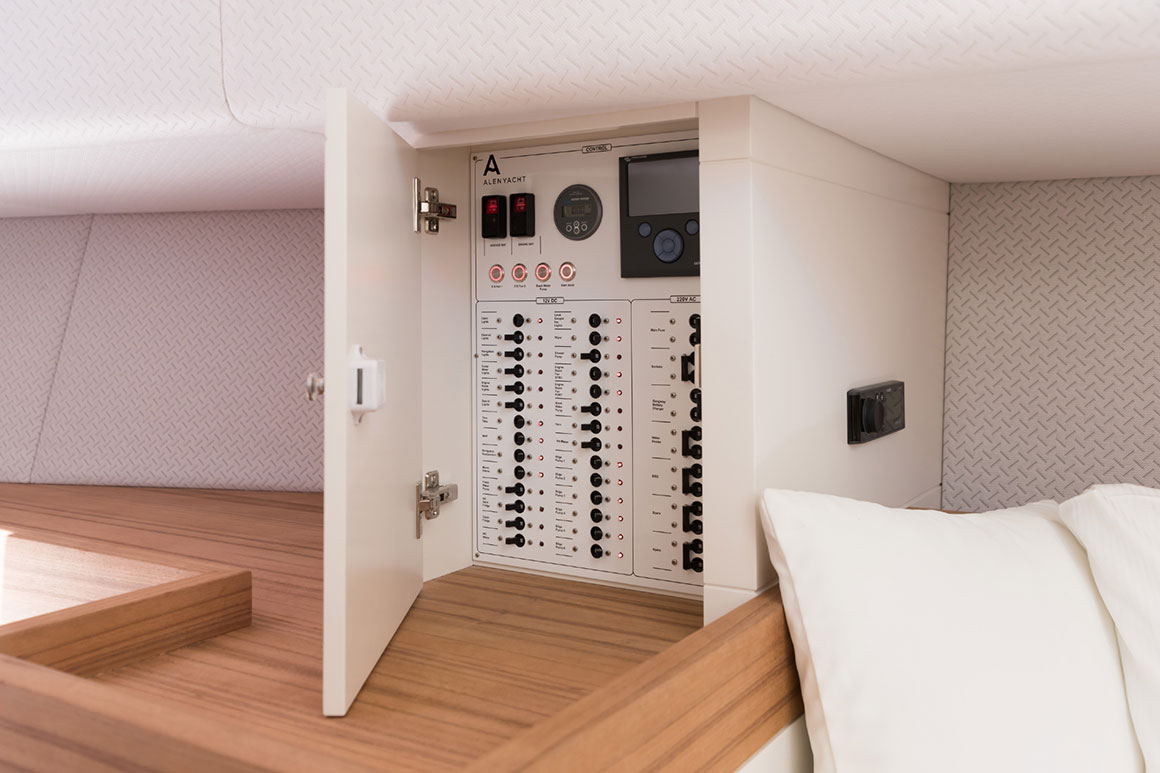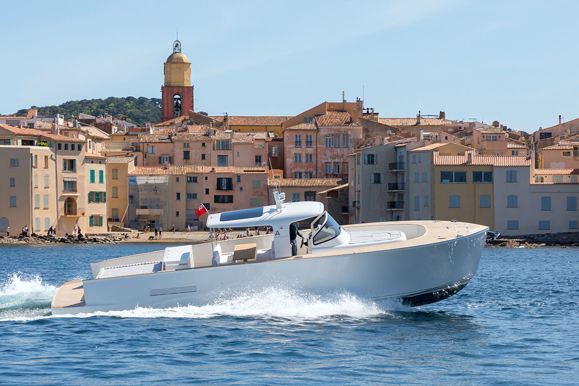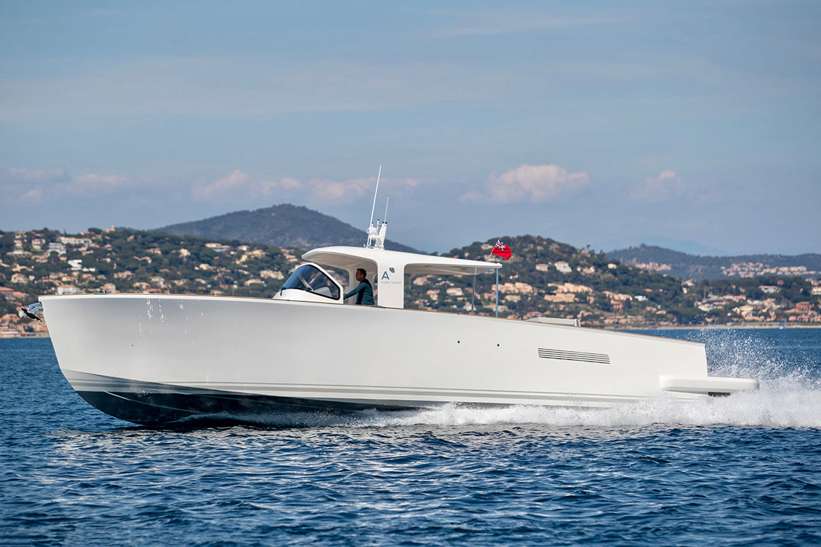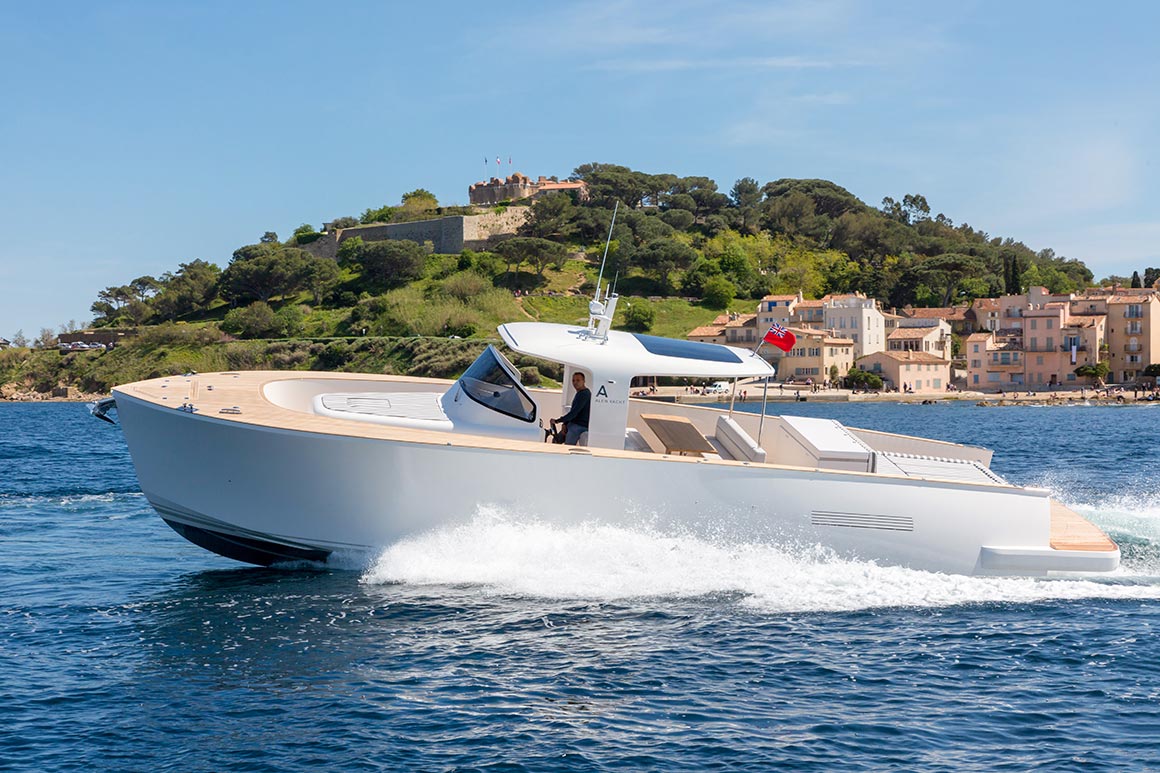 Sleek and refined, the Alen 45 combines elegance with technological innovation. The yacht’s ‘all around’ deck makes full use of the exterior space and allows 12 guests on board in comfort and safety. Her technically engineered V-shaped hull ensures steady cruising in all conditions.