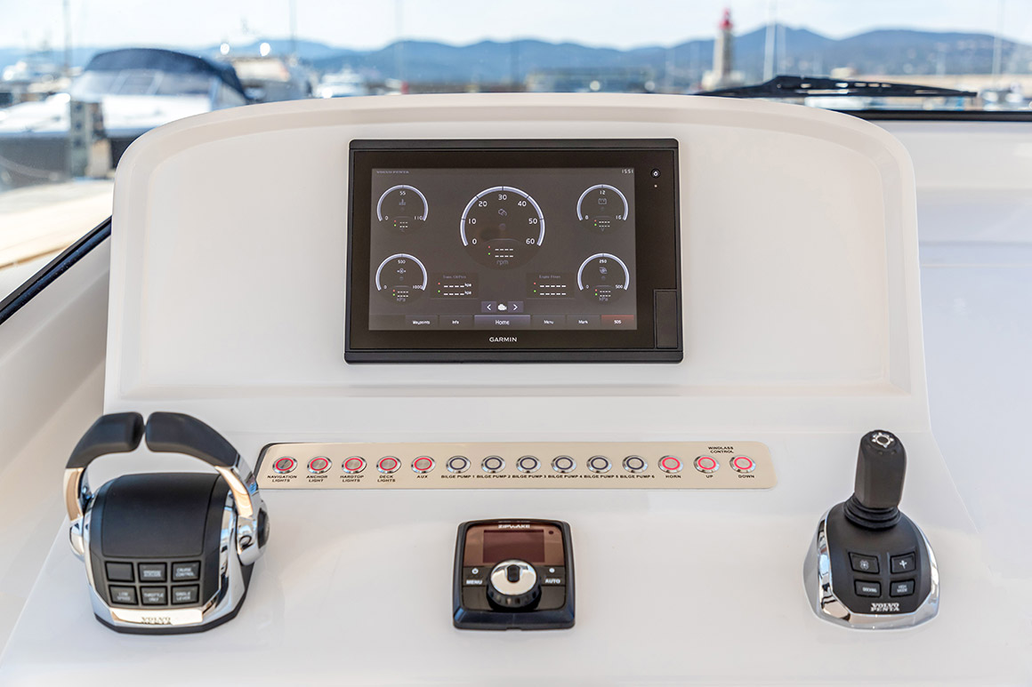 The two Volvo IPS 600 engines achieve a top speed of 38 knots.